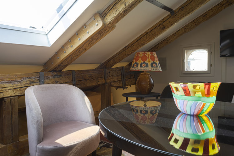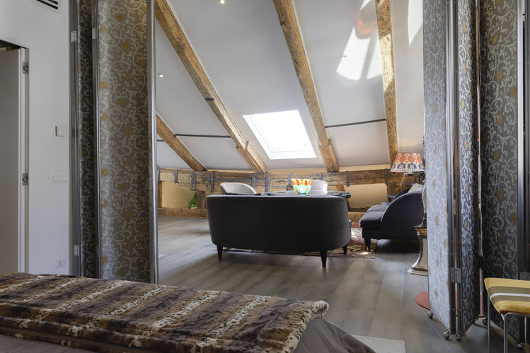 Immagina di svegliarti in un loft romantico inondato di luce naturale, circondato da travi in legno restaurate e da un design contemporaneo. Lo sguardo si perde nel panorama mozzafiato del canale e dell'antico centro storico, mentre la privacy è totale, essendo l'appartamento situato all'ultimo piano del palazzo. Il soggiorno è ampio e luminoso, con una cucina piccola ma funzionale. Il grande e comodo letto si nasconde dietro un paravento pieghevole in acciaio e tessuto, opera di un influente designer italiano, creando un'atmosfera intima e suggestiva. Il bagno è elegante e dotato di un'ampia cabina doccia e lavabo di design, con colori scuri e illuminazione intelligente. Nella parte più bassa della mansarda si trovano due comodi letti singoli aggiuntivi dotati di ruote che possono essere spostati a piacimento. Questo loft è perfetto per coppie romantiche che cercano privacy, comfort e interni di design in una posizione centrale. Preparati a vivere un soggiorno indimenticabile in un'oasi di charme e design.